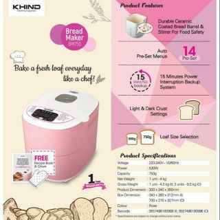 Cny Sales Khind Bread Maker Bm750 Rose Mesin Pembuat Roti Free Recipe Glove 750g Loaf Size Selection Pre Set Menus Shopee Malaysia