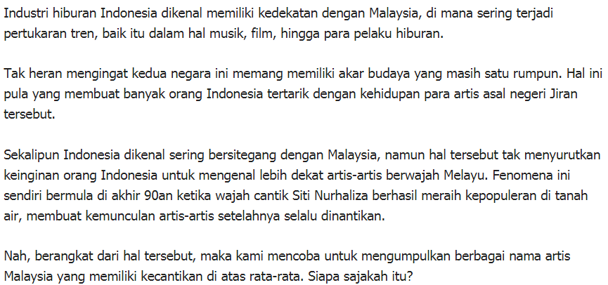 10 aktres malaysia terpopular era 2010an papar berkaitan pada 14 8 2016 jumlah. Seorang pengacara dan juga pelakon. Pelakon lelaki malaysia merujuk kepada pelakon lelaki yang pernah berlakon dalam filem malaysia. Namun ada juga yg muncul dengan irama berbeza seperti irama malaysia r b dance music rap rock juga jazz.