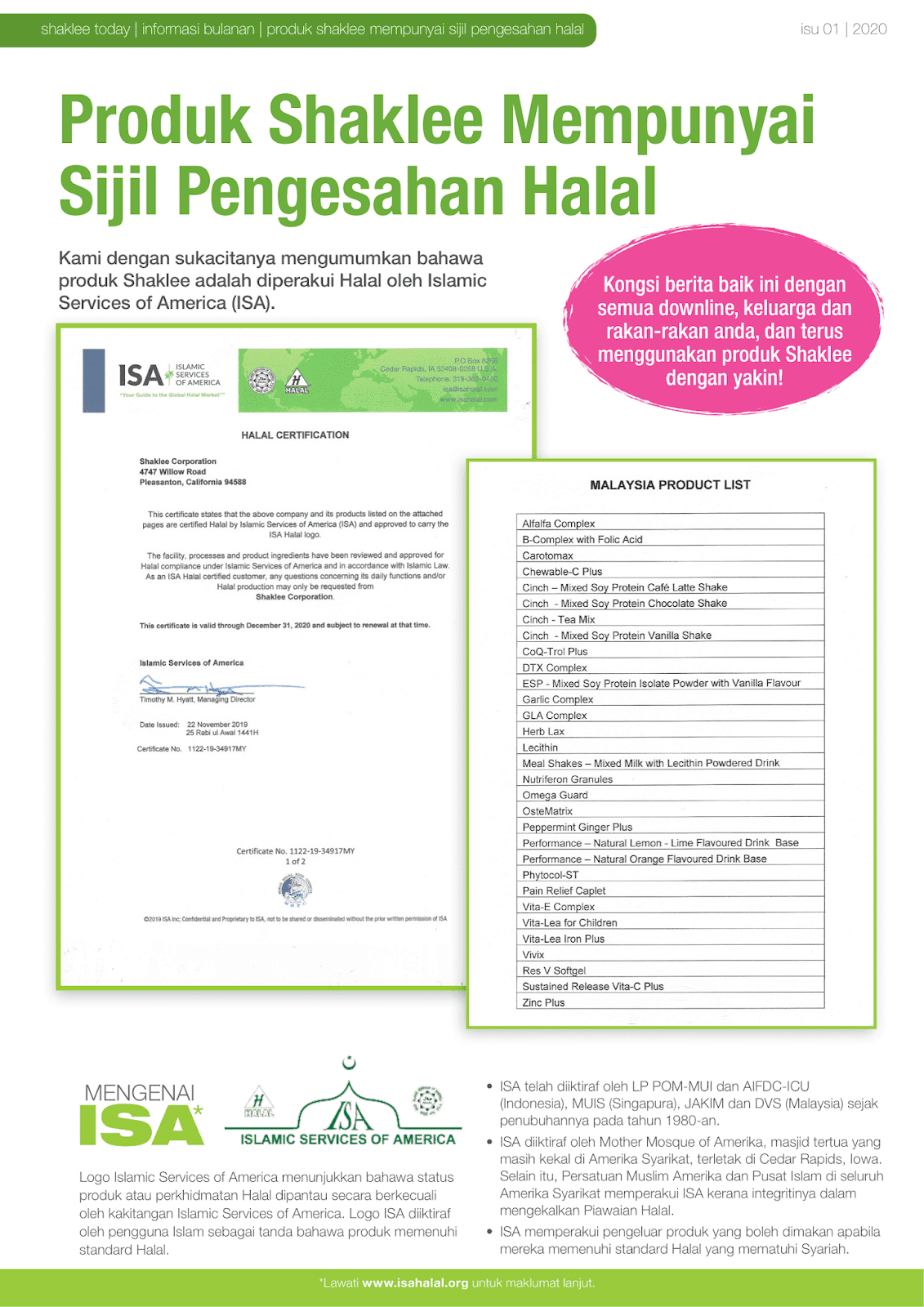 Sijil Halal Shaklee 2020 Certificate Produk Shaklee Halal Umi Nazrah