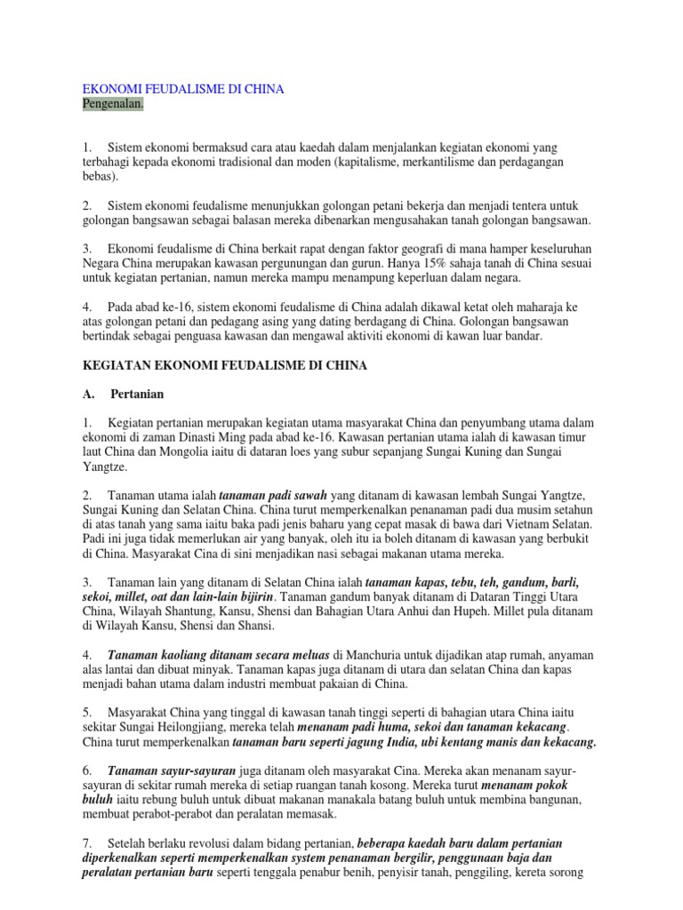 Doc Huraikan Perkembangan Sistem Ekonomi Feudalisme Di China Pada Abad Ke 16 Tasha Ghn Academia Edu