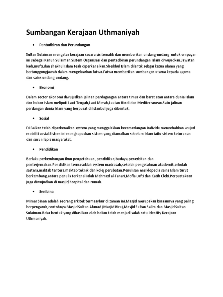 Kerajaan Turki Uthmaniah C Sumbangan Kerajaan Turki Uthmaniyah Dalam Pembinaan Tamadun Wattpad