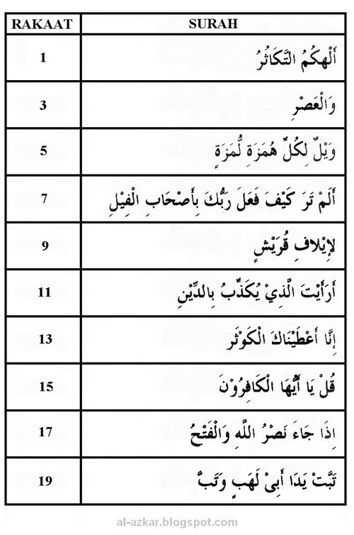 Jadual Bacaan Surah Surah Dalam Solat Fardhu Harian