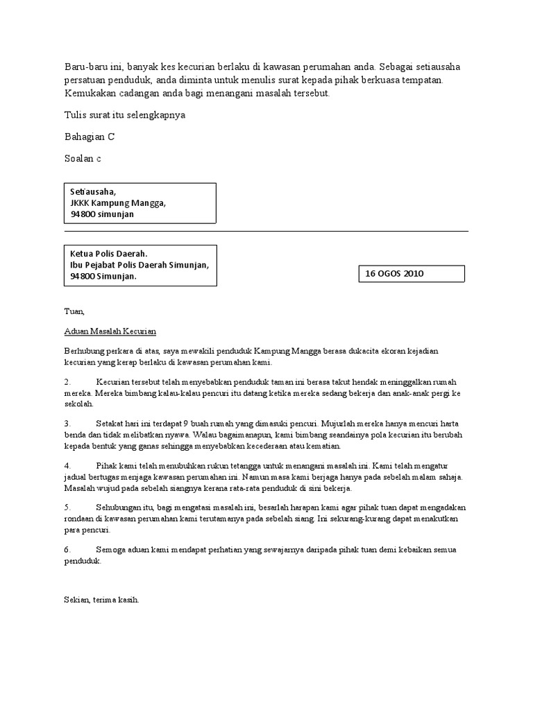 Contoh Surat Kiriman Rasmi Surat Aduan
