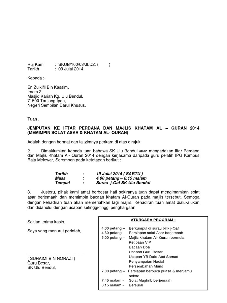 Doc Surat Jemput Hadir Majlis Berbuka Puasa 2013 Azahar Buang Academia Edu