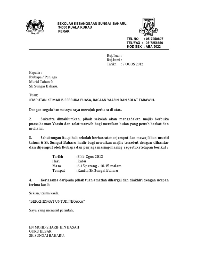 Surat Jemputan Berbuka Puasa Murid