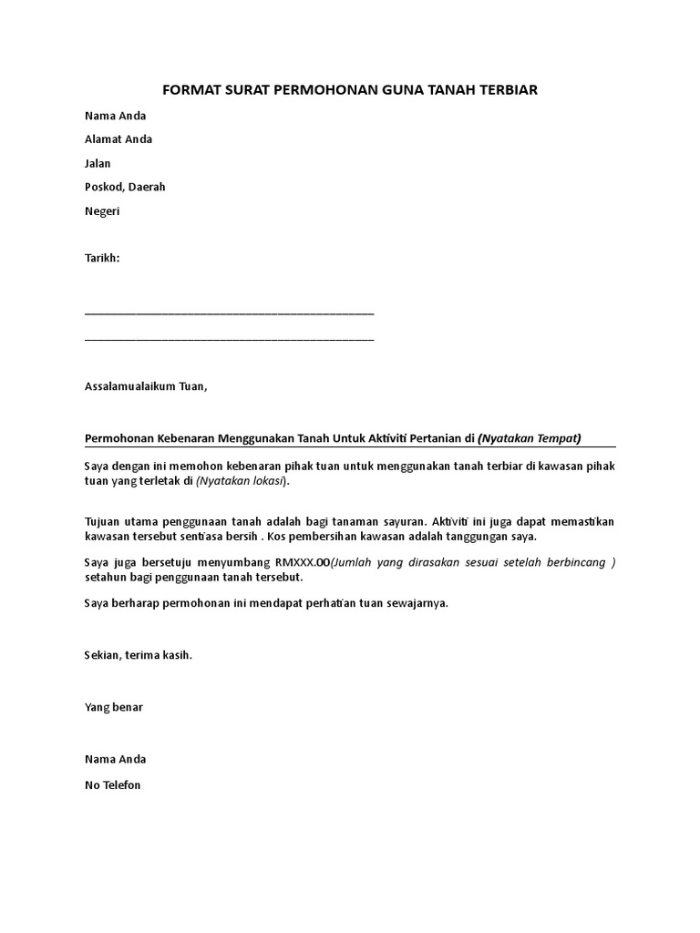Contoh Surat Rasmi Permohonan Tanah Kerajaan Surat Rasmi U