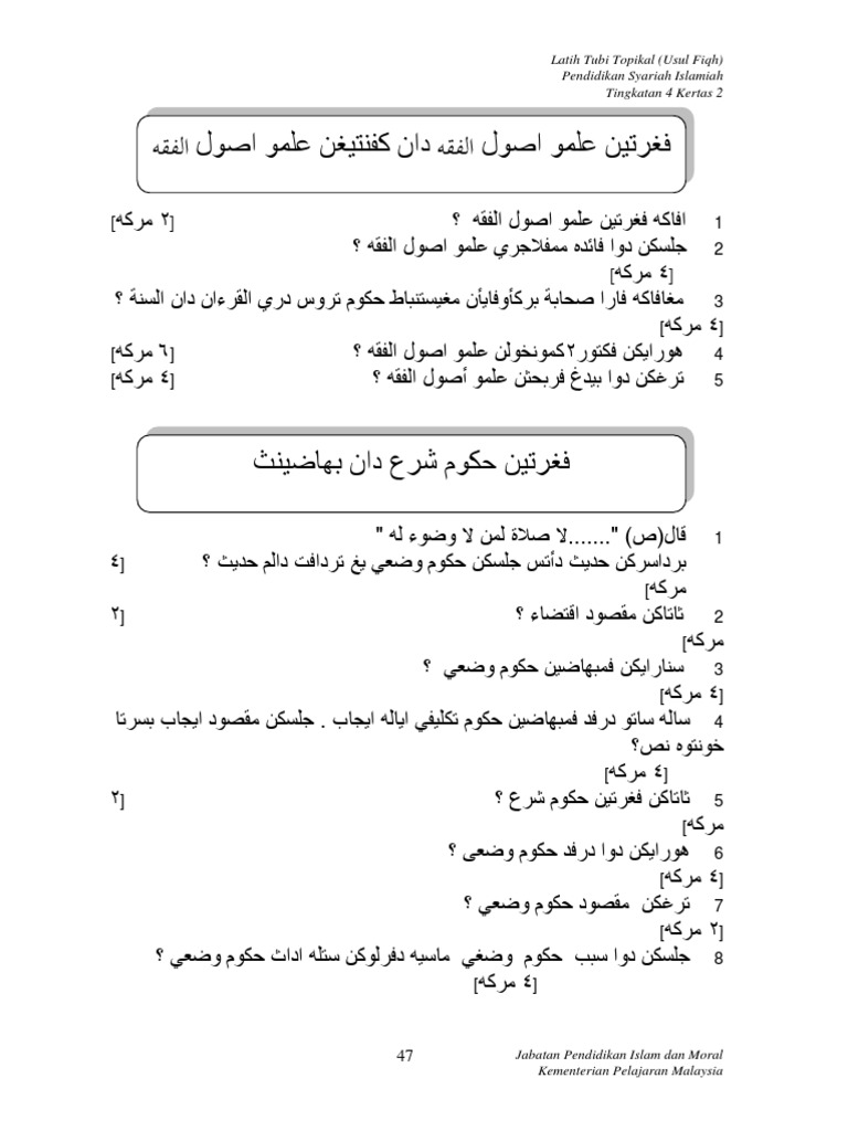 Soalan Topikal Usul Fiqh Kertas 2 T4