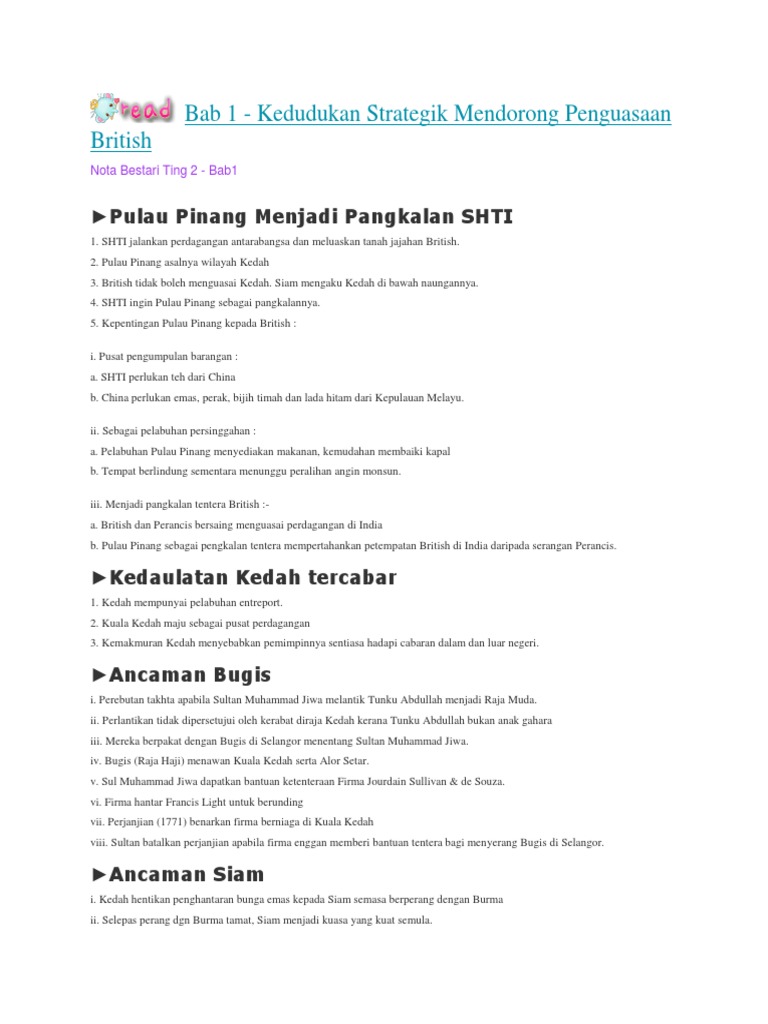Nota Sejarah Ting 2 Bab 1 Bab 8 Docx Document