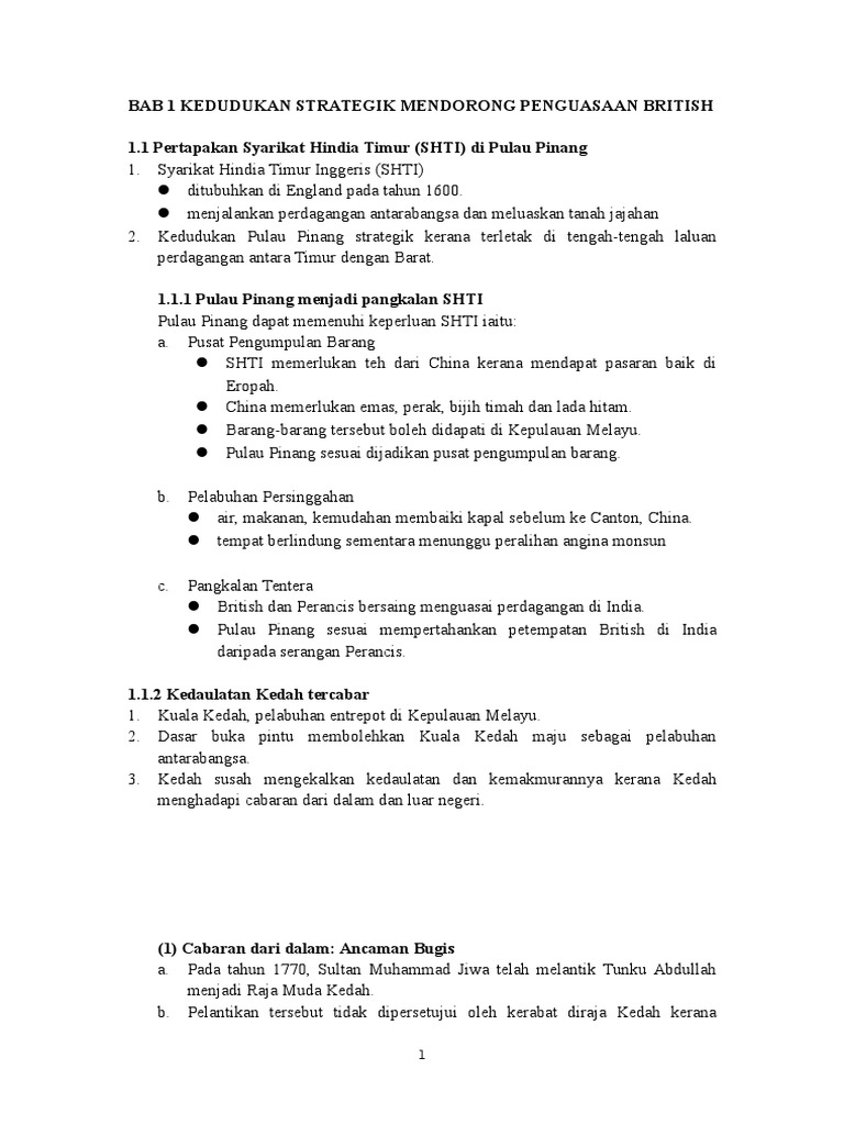 Kedudukan Strategik Mendorong Penguasaan British