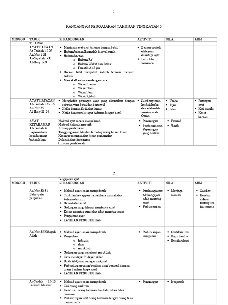 Rancangan Tahunan Tasawwur Islam Tingkatan 5 Rancangan Tahunan Tasawwur Islam Tingkatan 5 2017 Disediakan Pdf Document
