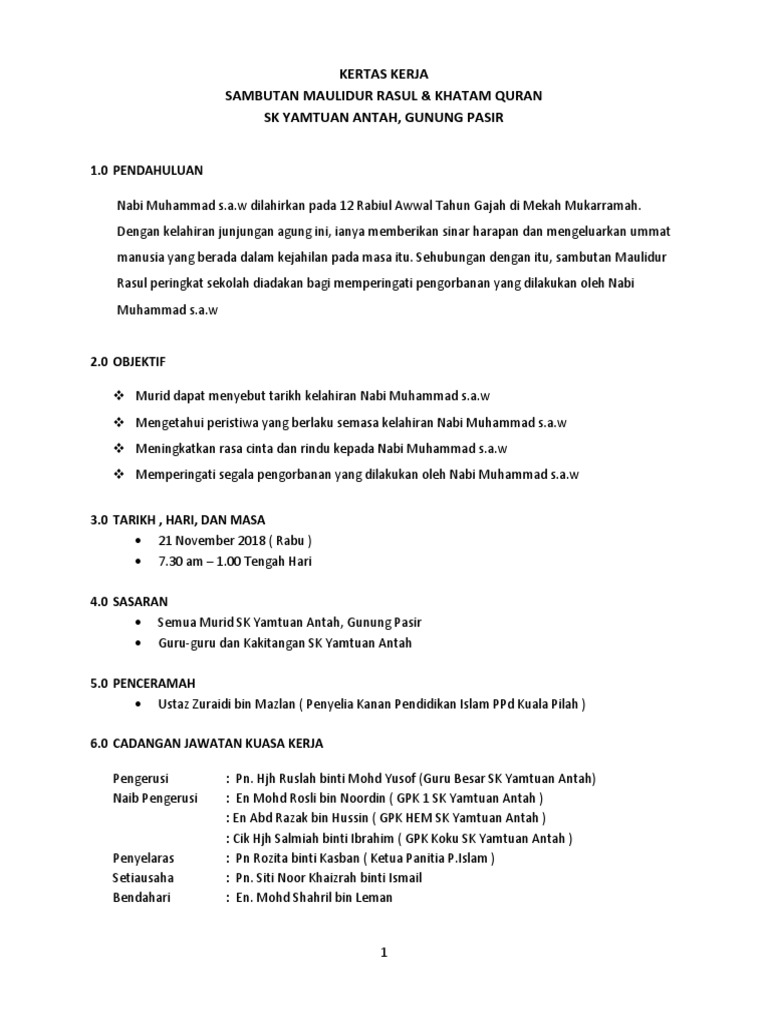 Kertas Kerja Sambutan Maulidur Rasul 2018