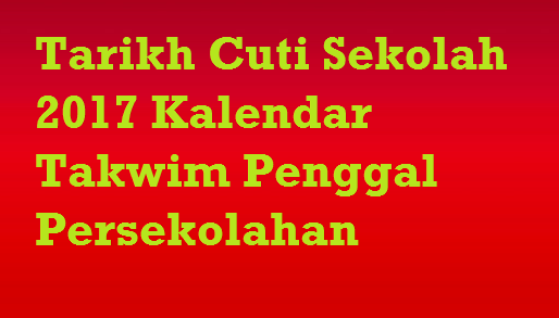 Tarikh Cuti Sekolah 2017 Kalendar Takwim Penggal Persekolahan As